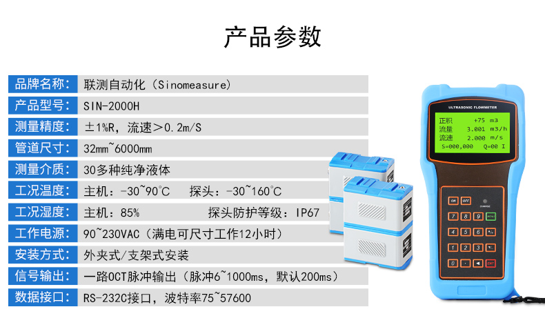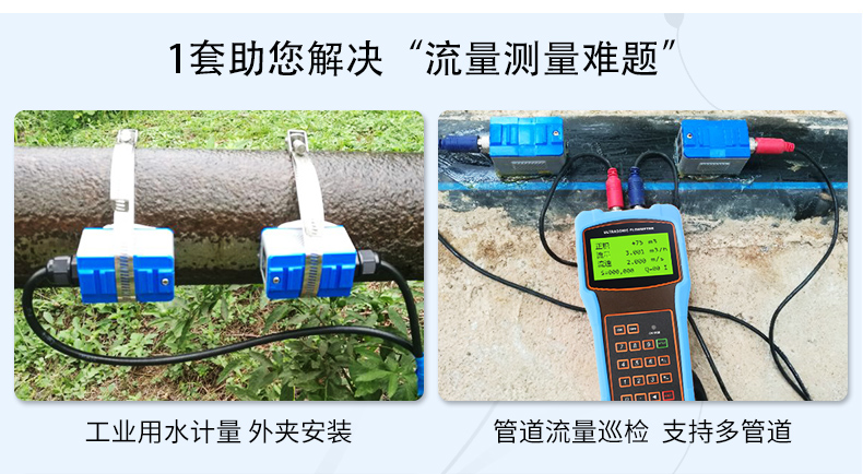 SIN-1158R外夾式或者管段式超聲波流量儀表是以“速度差法”為原理,測量圓管內液體流量的儀表。