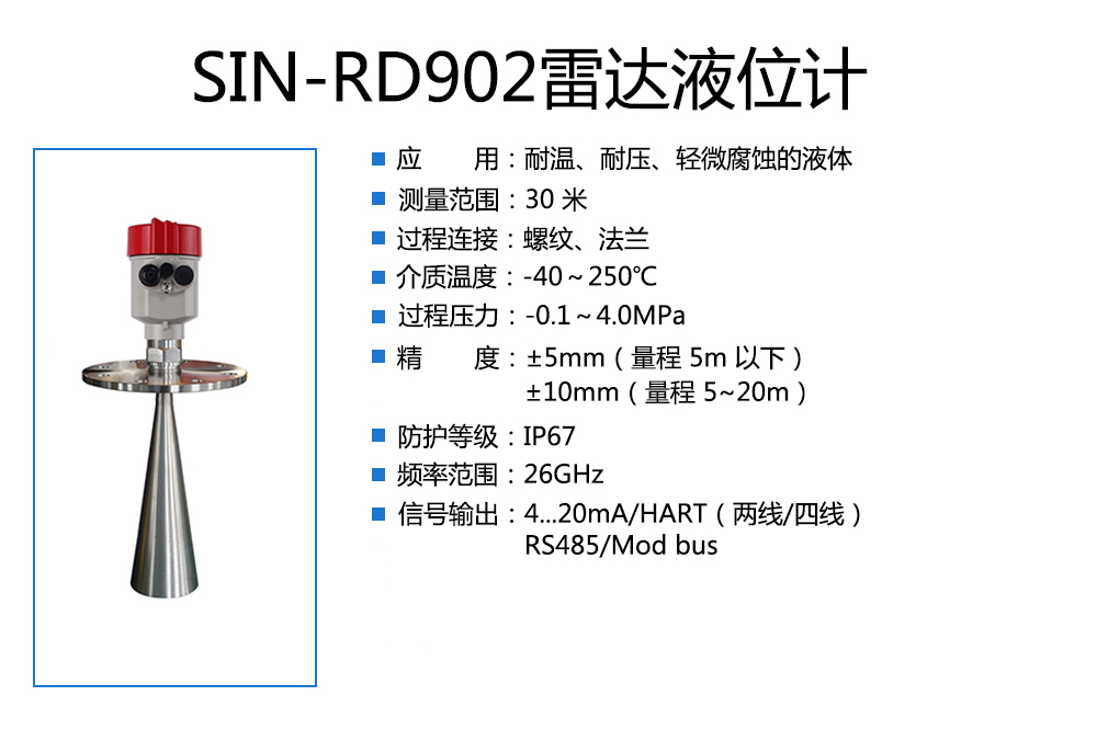 90 系列傳感器是 26G 高頻雷達(dá)式物位測量儀表,測量最大距離可達(dá) 80 米。