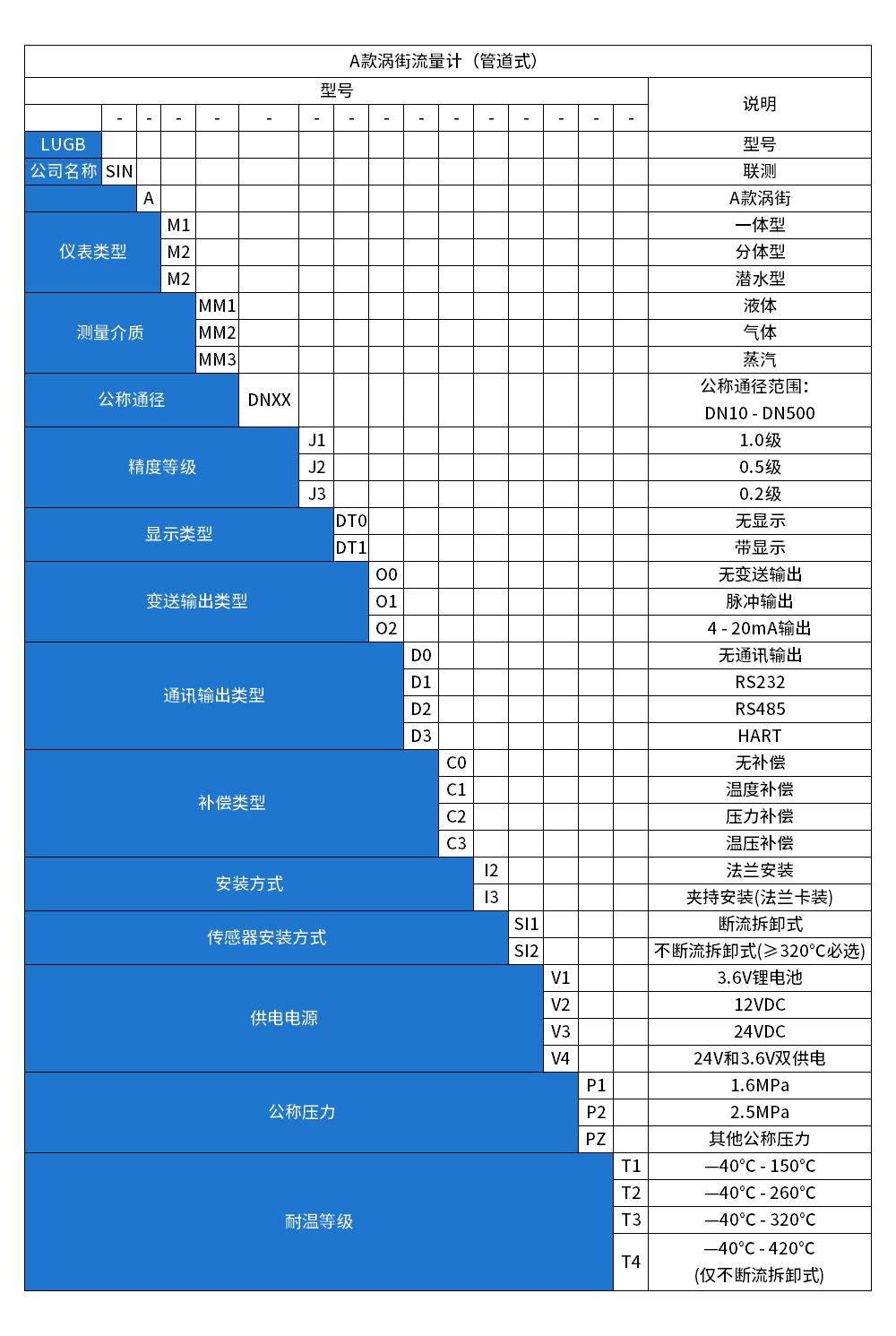 LUGB-SIN-A渦街流量?jī)x表廣泛用于供熱公司、熱力公司、化工行業(yè)等行業(yè),對(duì)過(guò)熱蒸汽、飽和蒸汽、壓縮空氣和一般氣體、水和液體的計(jì)量和控制。加厚本體