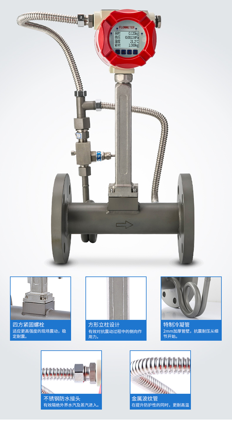 LUGB-SIN-A渦街流量?jī)x表廣泛用于供熱公司、熱力公司、化工行業(yè)等行業(yè),對(duì)過(guò)熱蒸汽、飽和蒸汽、壓縮空氣和一般氣體、水和液體的計(jì)量和控制。加厚本體,可有效避免現(xiàn)場(chǎng)管道振動(dòng)帶來(lái)的數(shù)據(jù)波動(dòng)和誤差。多用于高溫場(chǎng)合,例如過(guò)熱蒸汽等工況。
