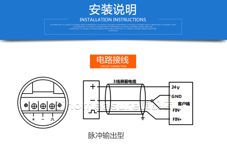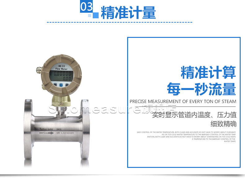 流體流經(jīng)傳感器殼體,由于葉輪的葉片與流向有一定的角度,流體的沖力使葉片具有轉(zhuǎn)動(dòng)力矩,克服摩擦力矩和流體阻力之后葉片旋轉(zhuǎn),在力矩平衡后轉(zhuǎn)速穩(wěn)定,在一定的條件下,轉(zhuǎn)速與流速成正比,由于葉片有導(dǎo)磁性,它處于信號(hào)檢測(cè)器(由永久磁鋼和線圈組成)的磁場(chǎng)中,旋轉(zhuǎn)的葉片切割磁力線,周期性的改變著線圈的磁通量,從而使線圈兩端感應(yīng)出電脈沖信號(hào),此信號(hào)經(jīng)過放大器的放大整形,形成有一定幅度的連續(xù)的矩形脈沖波,可遠(yuǎn)傳至顯示儀表,顯示出流體的瞬時(shí)流量或總量。