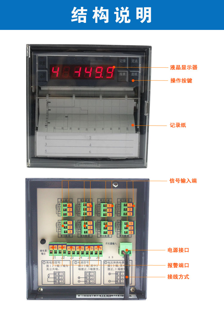 有紙記錄儀在測(cè)量,運(yùn)算,顯示,打印等功能上有了很大的提高可以很方便的實(shí)現(xiàn)網(wǎng)絡(luò)的連接。有紙記錄儀采集的數(shù)據(jù),常用的有:溫度、壓力、流量、液位、電壓、電流、濕度、頻率、振動(dòng)、轉(zhuǎn)速等。